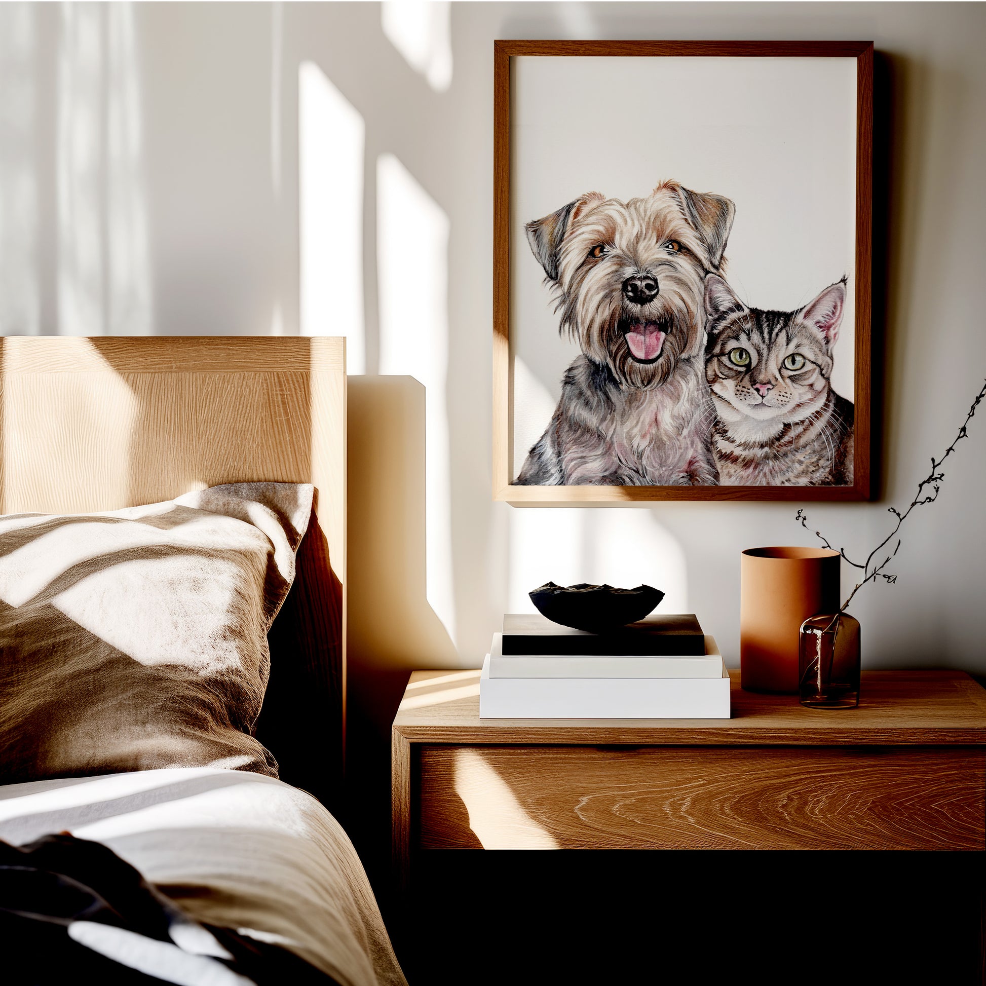 ✔️ Includes one, two, or three pets (headshot only or full-body with additional costs)